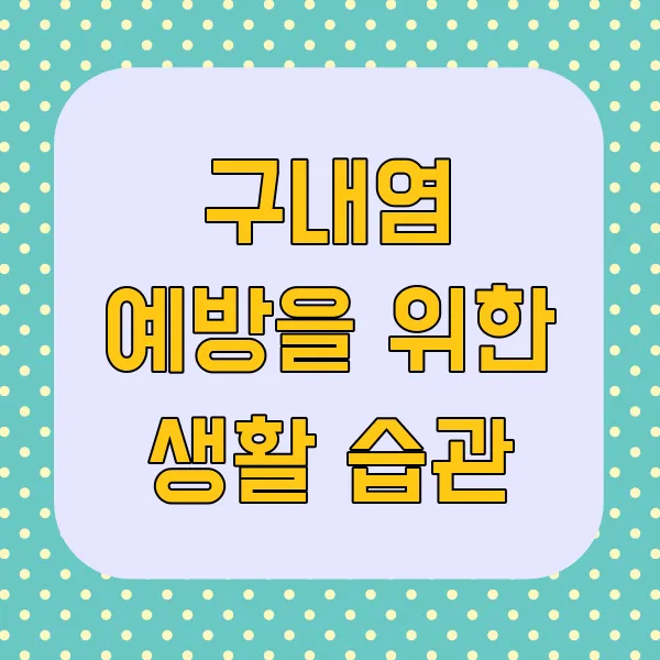 마지막으로, 입안의 위생 관리도 필요합니다. 구내염 증상이 있을 때는 특히나 구강 위생을 소홀히 해서는 안 돼요. 규칙적으로 양치질을 하고, 구강 세정제를 사용하는 것이 좋죠. 이렇게 하면 이미 염증이 생긴 부위의 감염을 예방할 수 있을 뿐만 아니라, 새롭게 생기는 염증도 예방할 수 있답니다!