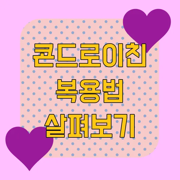 복용 방법은 다소 간단합니다. 보통 캡슐 형태로 나오는 콘드로이친은 식사와 함께 또는 후에 복용하는 것이 좋습니다. 왜냐하면, 공복에 복용할 경우 위장에 부담을 줄 수 있기 때문이에요. 따라서 아침, 점심, 저녁으로 나누어 복용하는 것도 좋은 방법이에요! ☕🍴